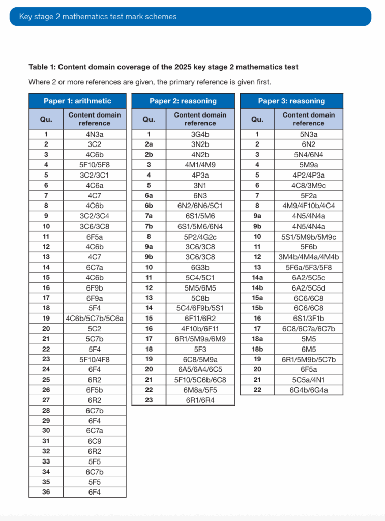 - ~40% of questions in the 2025 papers assessed Year 6 content