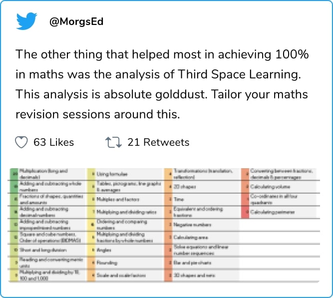 Each year, our academic team analyses every SATs paper, alongside data from more than 2.1 million Third Space Learning lessons, to identify the content that matters most.