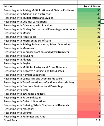 Our analysis of KS2 SATs papers showed that certain strands appear far more often and carry most of the available marks in the SATs papers.