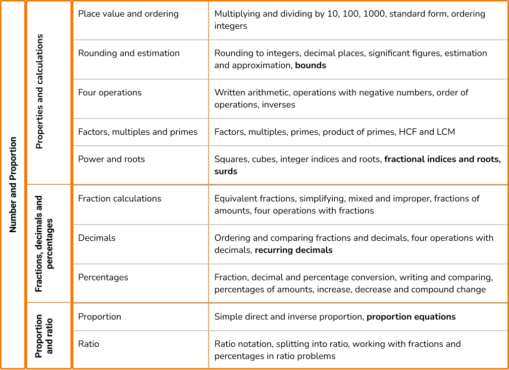 - Proportional reasoning, particularly ratio, is assessed throughout the paper, and a lack of understanding could limit the accessibility of other topics. Ensure a strong understanding of direct and inverse proportion, and fluency with ratio skills.