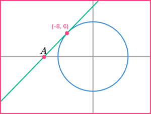 The tangent to the circle at the point (-8,6) intersects the x axis at point A.