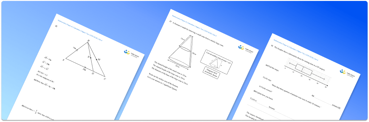 This 2025 practice paper pack for students following the OCR exam board, contains 3 higher practice papers (Paper 4 Calculator, Paper 5 Non-Calculator and Paper 6 Calculator).