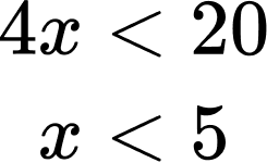 \begin{aligned} 4x&<20\\ x&<5 \end{aligned}