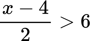 \begin{aligned} \cfrac{x-4}{2}&>6\\ x-4&>12\\ x&>16 \end{aligned}