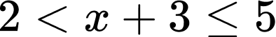 \begin{aligned} 2<x&+3\leq5\\ -1< \, &x\leq2 \end{aligned}