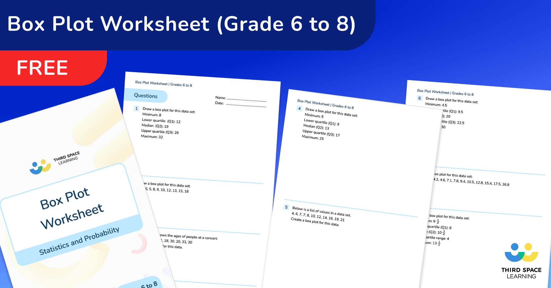 Free Box Plot worksheet for 6th and 7th Grade with 20 skills based practice questions.