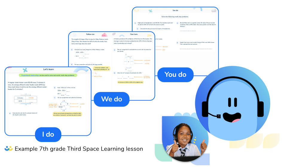 Third Space Learning helps teachers strengthen seventh grade math instruction with personalized tutoring and resources aligned to numerical and algebraic expressions and proportional relationships.