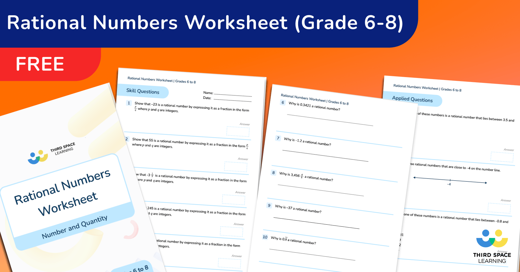 Free Rational Numbers worksheet for 6th Grade with 10 skills based practice questions and 5 applied questions.