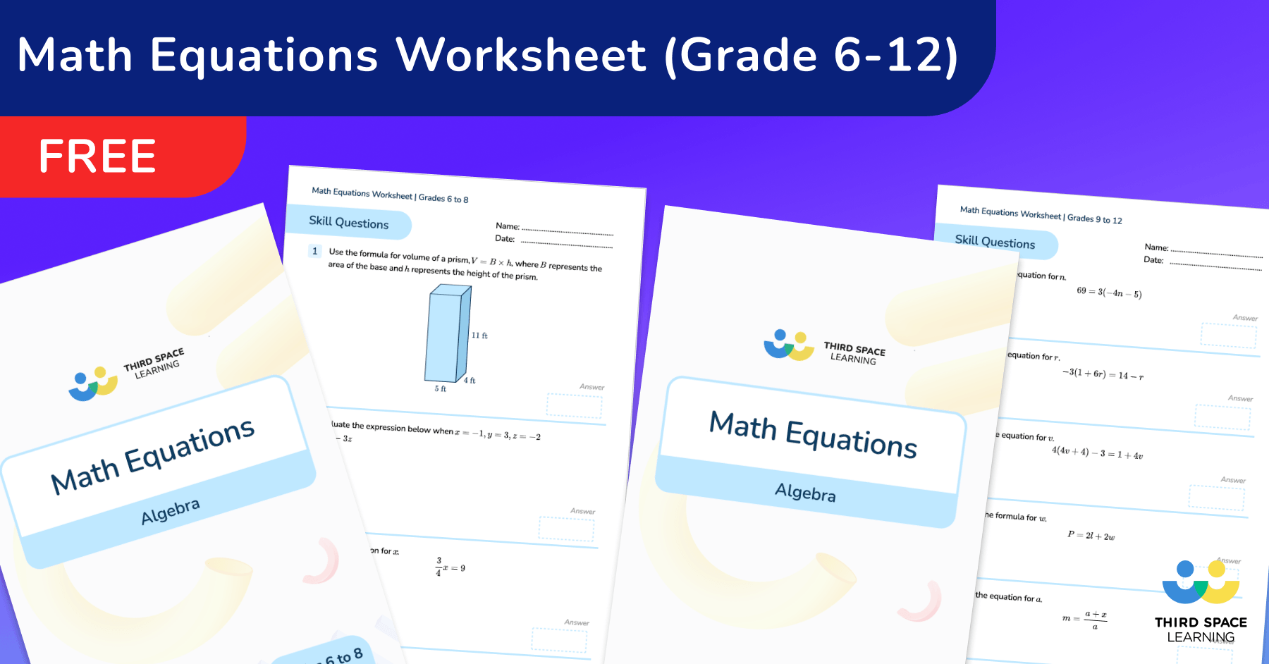 Free Math Equations worksheets for 6th Grade to 12th Grade. Each worksheet contains 10 skills based practice questions and 5 applied questions.
