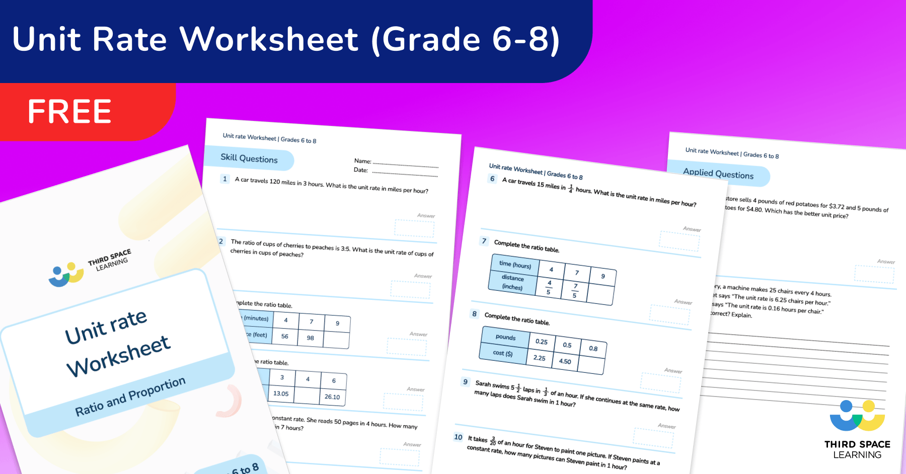 Learners also build an understanding of interpreting unit rates, and apply them to real-world contexts. For example, speed, pricing and measurement.
