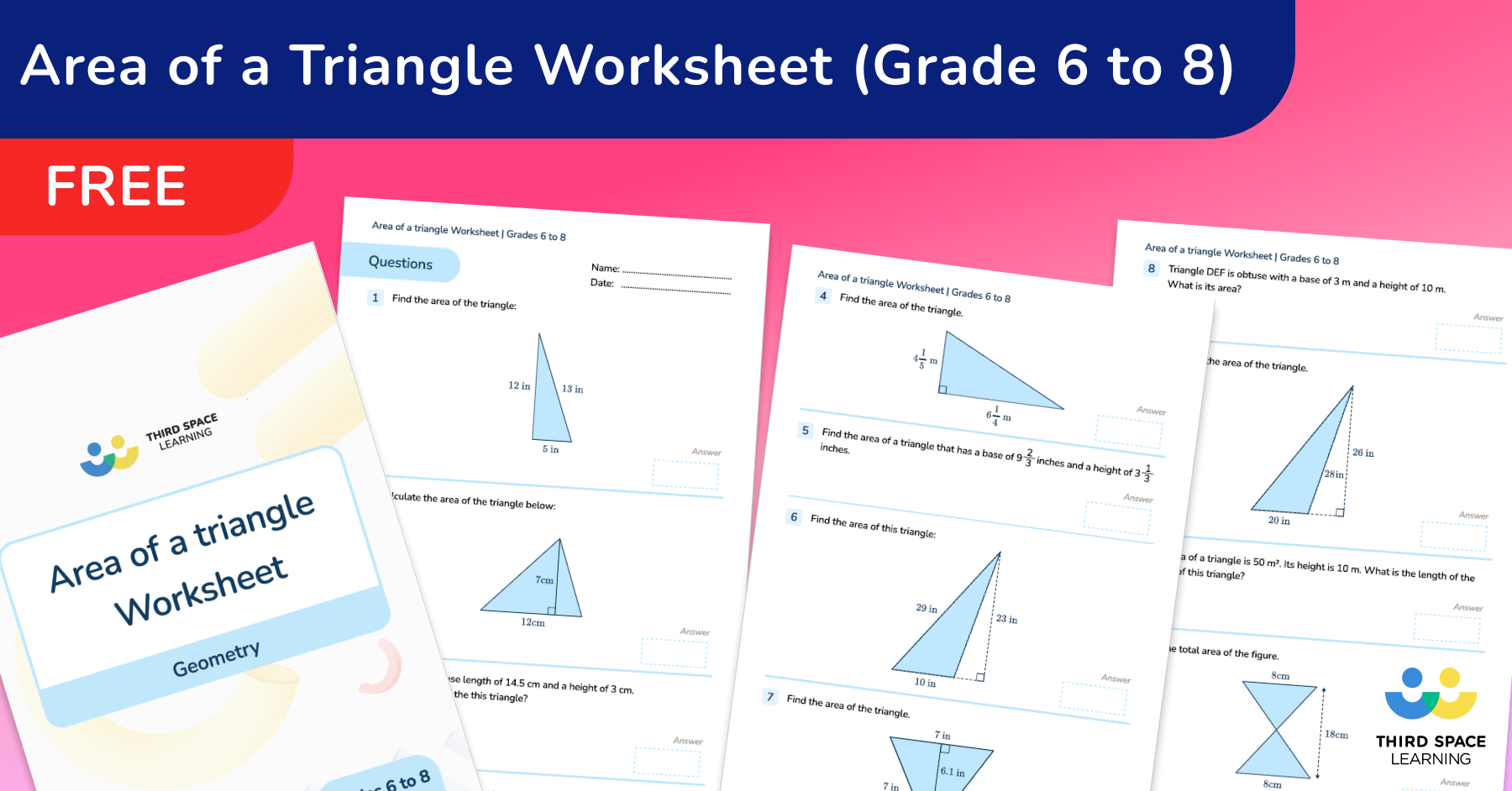 Free Area Of A Triangle worksheet for 6th Grade with 20 skills based practice questions.