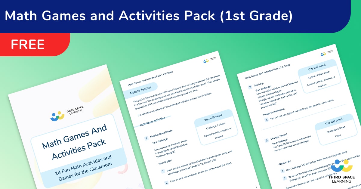14 fun math activities and games for 1st grade students to complete independently or with a partner.